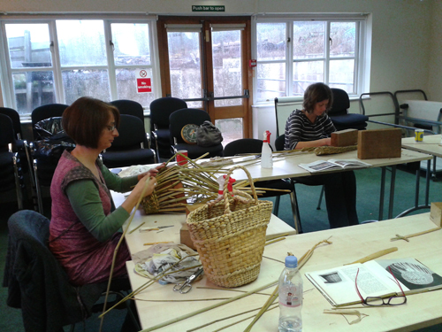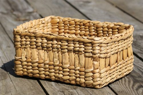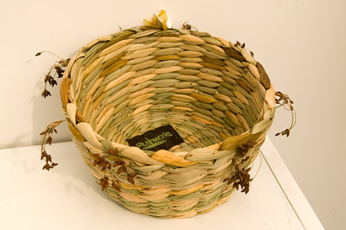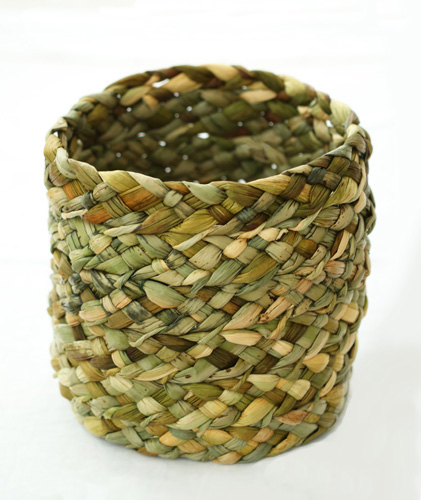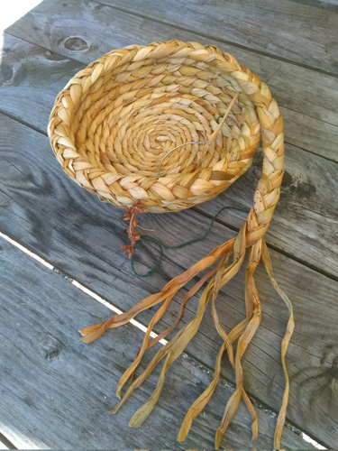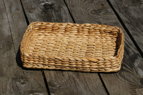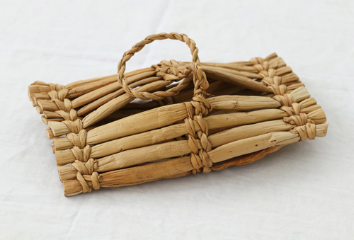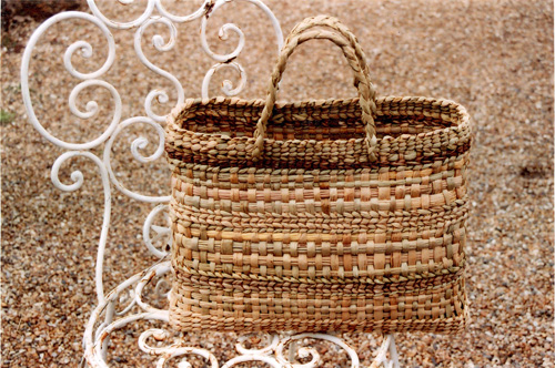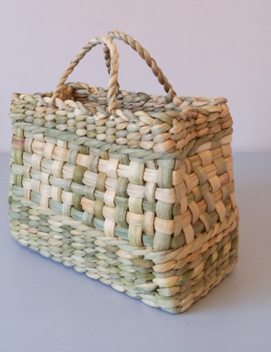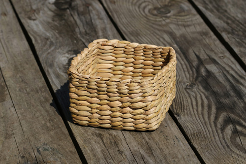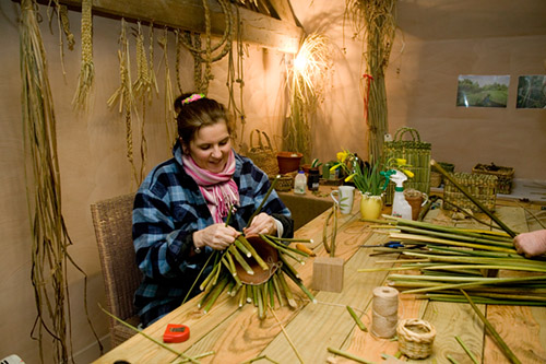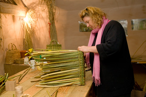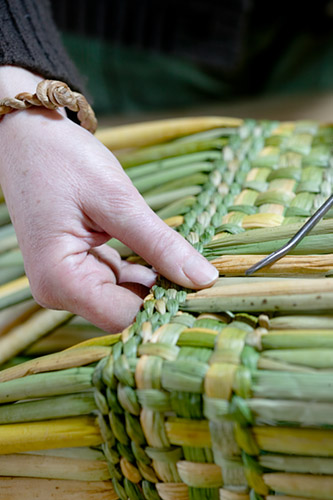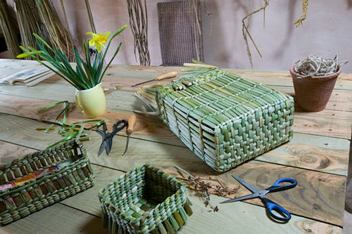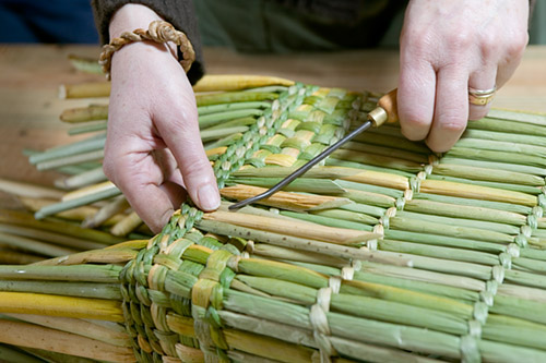 Weaving and plaiting baskets with the help of a rush threader or curved needle
