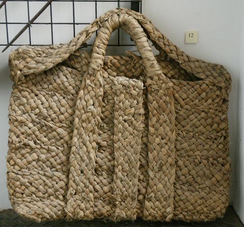 Traditonal plaited workman’s basket or frail, in use in the 1920s, Sherborne Museum, Dorset